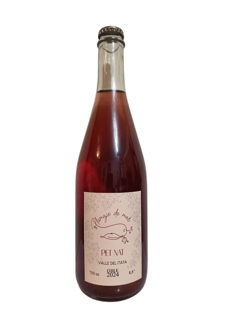 Plumaje de Mar es un espumante natural elaborado 100 % a mano con uvas de cepa País, provenientes del Valle del Itata, comuna de Ñiquén. Este Pet Nat (petillant naturel) se caracteriza por sus finas burbujas naturales, resultado de un proceso artesanal y respetuoso con la tierra.